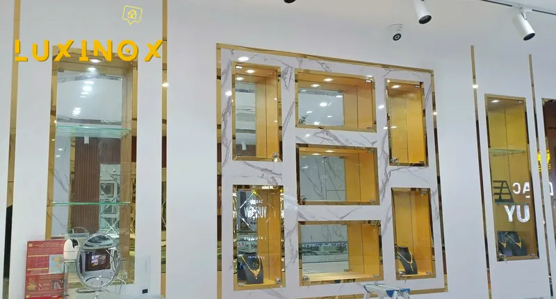 Công trình thương mại: Văn phòng, showroom, quán café, nhà hàng sử dụng nẹp inox PVD để tăng sự sang trọng.