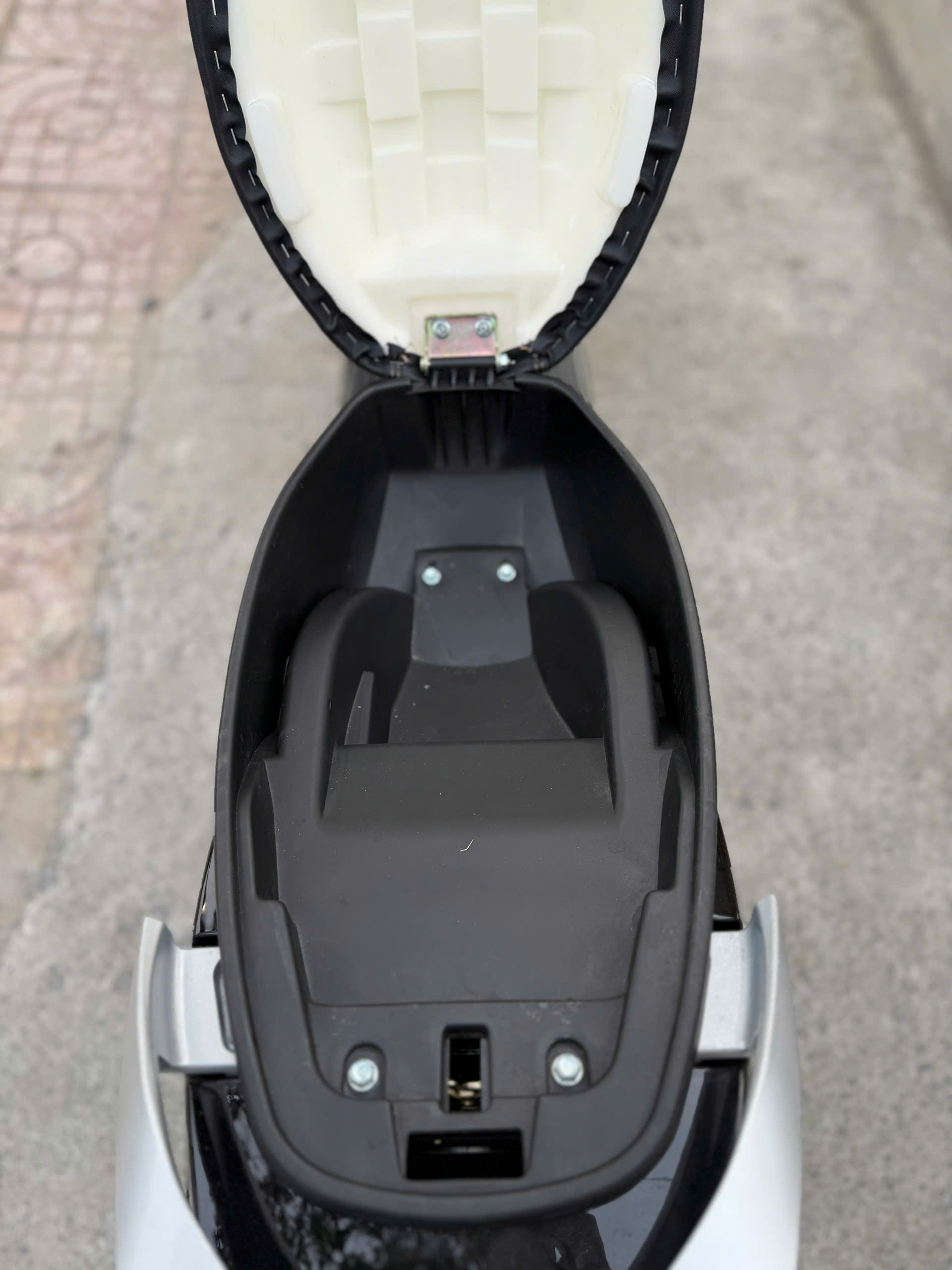 Baga phía trước được làm từ hợp kim chắc chắn, hỗ trợ lắp thêm giỏ đựng đồ hoặc treo balo, rất tiện lợi cho học sinh. Một điểm cộng lớn khác là sàn để chân rộng rãi và bằng phẳng, tạo cảm giác thoải mái khi ngồi và cũng chính là nơi đặt bình ắc quy giúp xe có trọng tâm thấp hơn, chạy đầm hơn. Yên xe cao 740mm phù hợp với vóc dáng đa số học sinh – sinh viên ở Việt Nam. Chiều dài yên cũng rộng rãi, đủ cho hai người ngồi thoải mái mà không bị víu.